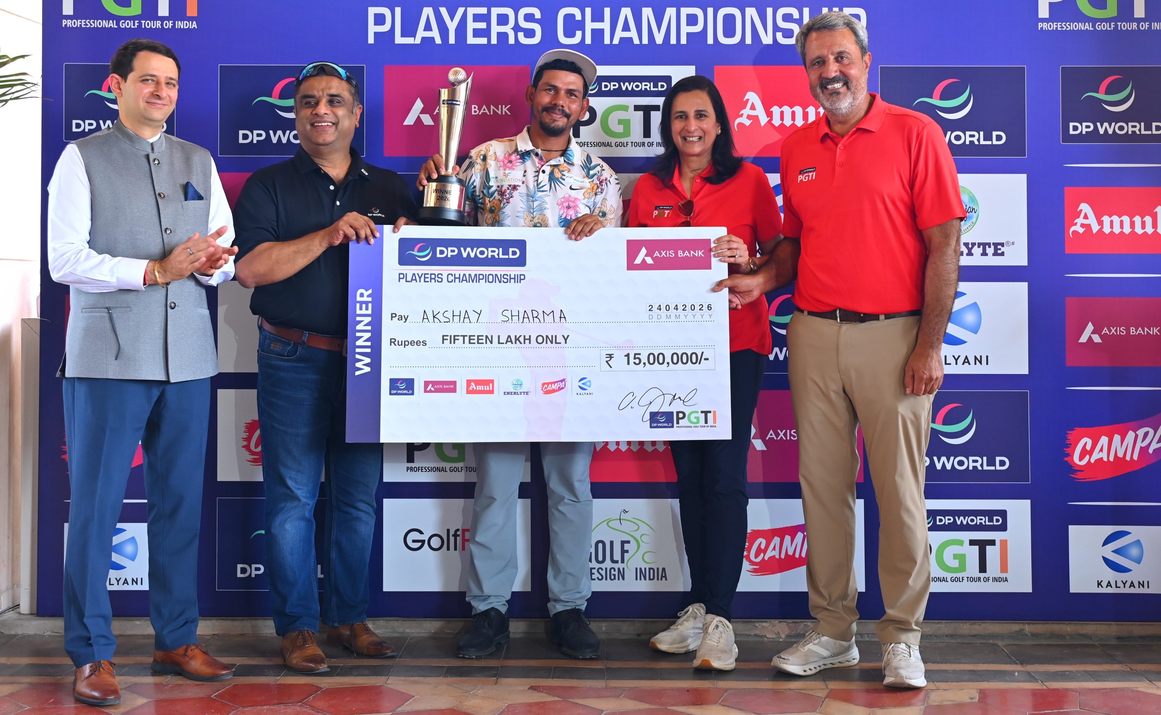 Nuh, Haryana: Akshay Sharma delivered a flawless eight-under 64 to secure his third DP World PGTI title at the Rs 1 crore DP World Players Championship held at the Classic Golf & Country Club in Nuh, Haryana.
