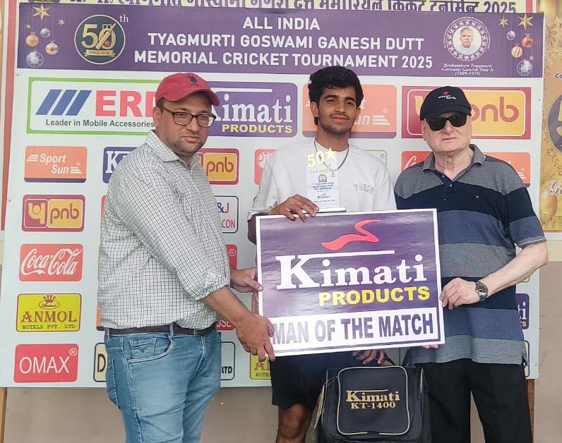Hrithik Shokeen gets Man of the Match Award in this picture while Avneesh Sudha gets Player of the Match Award in the top picture