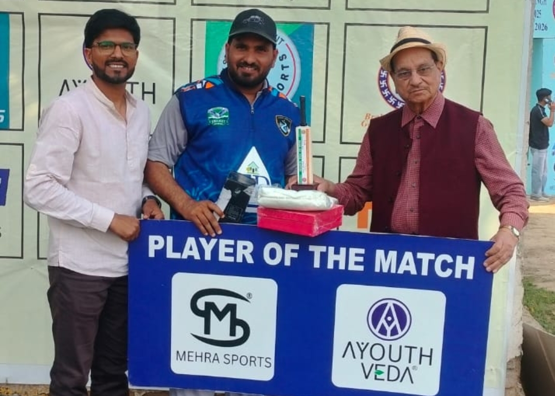Chasing 240, Swami Shraddhanand College mounted a spirited response but closed at 211/5. Dipesh Balyan dazzled with an unbeaten 79 off 33 deliveries, and Shresth Yadav added 44, yet the steep target remained out of reach. HG starred with the ball, claiming 3/46, while Luv Budhwar took two wickets. Chhikara was adjudged Man of the Match for his match-setting knock.
