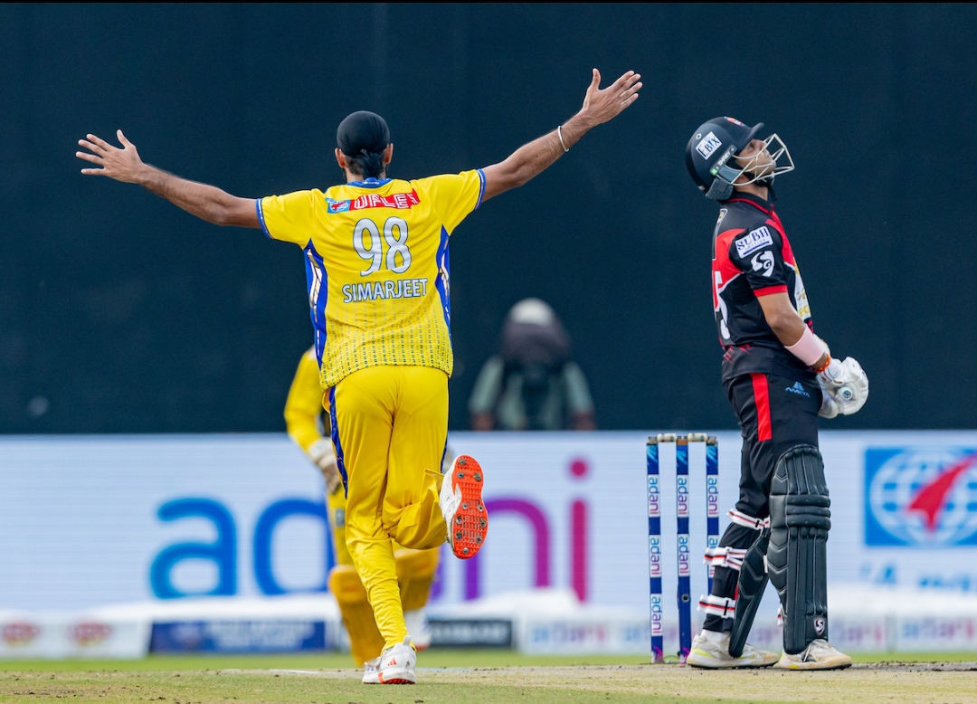 To accompany him was the most expensive buy at the auction in Simarjeet Singh and he repaid the faith of the owners in him by giving in a Man-of-the-Match performance with a five-for. They gave hardly any space to breath to the Riders’ batsmen who did not have any answers to the ruthless bowling by the opening duo who accounted for seven wickets. Sujal Singh tried his best to occupy the crease and put something on the board but he too departed after scoring a hard fought 39 off 25 balls, being the lone warrior. They were bundled out for 90 on the last ball of the last over.
