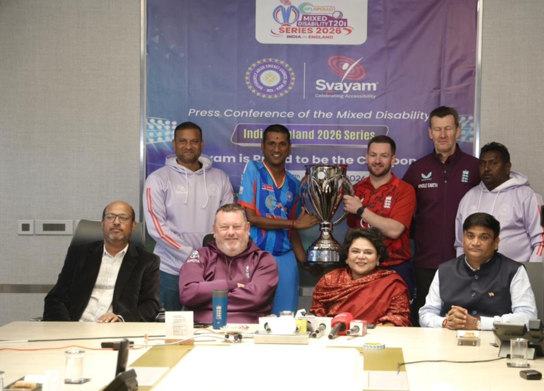 The collaboration was formally announced at a press conference held on Wednesday at the Jindal Centre in New Delhi. The event was attended by key stakeholders from Indian and international disability cricket, including Sminu Jindal, Founder-Chairperson of Svayam and Managing Director of Jindal SAW Ltd; Ravi Chauhan, President of DCCI; and Ian Martin, Head of Disability Cricket at the England and Wales Cricket Board. Coaches and captains of both the Indian and England teams were also present.